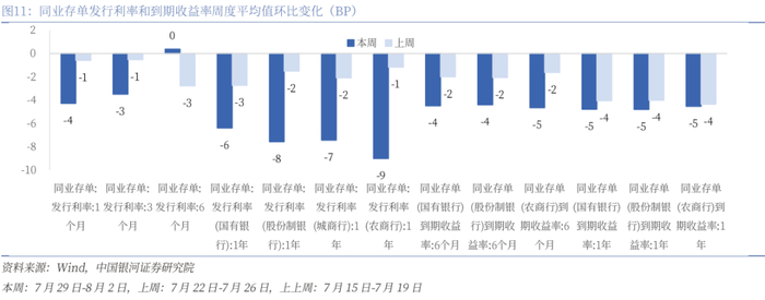 同业存单发行利率下行:1年期国有银行同业存单发行利率收于1.84%(-6BP)。