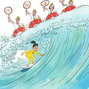 9.冲浪比赛采取打分制,每道浪的满分为10分。五位裁判会根据冲浪选手的动作难度、类型以及多样性打分,选手的力量、速度以及动作流畅度都会成为裁判的评分依据。