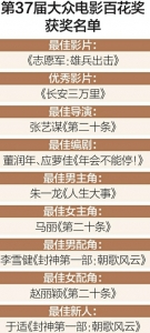 第37届大众电影百花奖各奖项名花有主