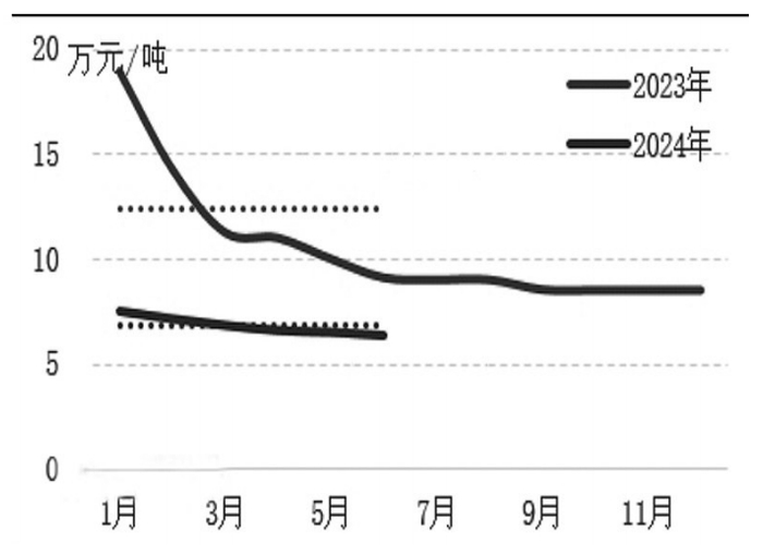 2024年,PVDF价格延续2023年下跌行情且持续走低,主要原因在于供大于求及成本支撑不足。