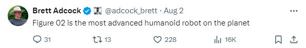 该公司创始人CEO布雷特•阿德科克(Brett Adcock)自信发言:Figure 02是地球上最好的人形机器人。