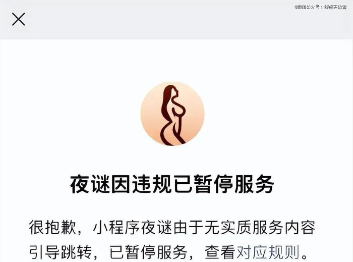 去年7月,京东夜谜小程序曾抢先登陆微信,并特地注明“以国家法律为底线,社会道德风俗良序为标准”,然而依旧在上线数小时后被暂停服务,理由是“无实质服务内容引导跳转”。