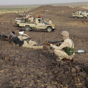 7月底,马里政府军士兵和瓦格纳雇佣兵与分离主义武装展开“激烈的战斗”。图中为分离主义武装。法新社