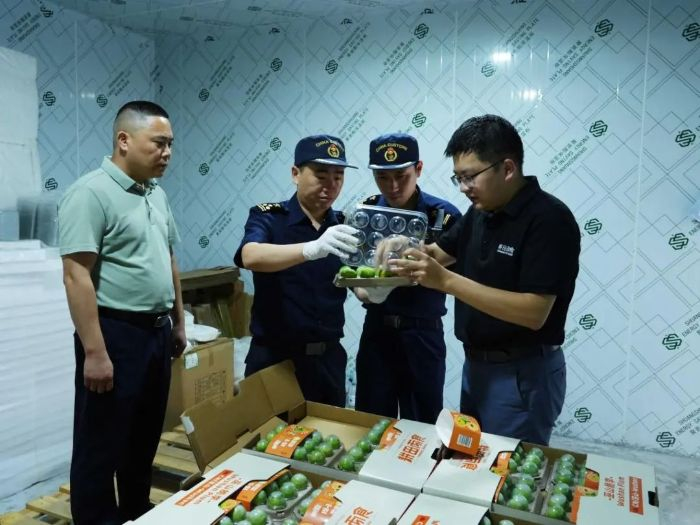 ▲ 7月8日,巫山脆李氮气包装车间冷库,来自万州海关的工作人员正在对即将销往香港的巫山脆李进行检验检疫。(本文配图由巫山县融媒体中心提供)