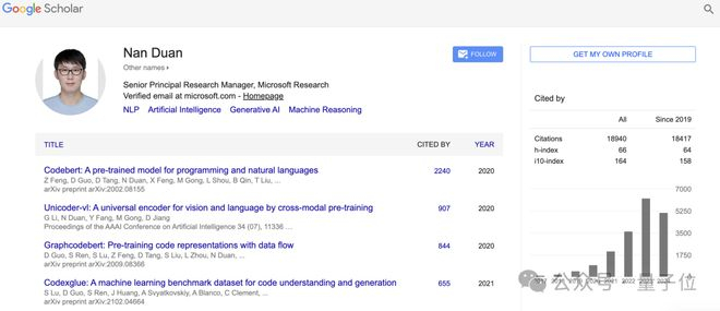 段楠从天津大学博士毕业后就加入MSRA,当今NLP领域成就最高的华人之一、MSRA前副院长周明是他的导师。