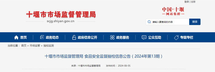 【湖北省】十堰市市场监督管理局食品安全监督抽检信息公告(2024年第13期)