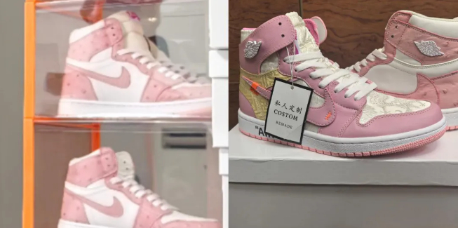 左图为原版鞋,右图经过刺绣等“定制”加工