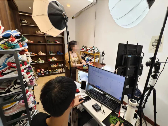 在网络平台购进真假国际品牌鞋类作为“基材”;