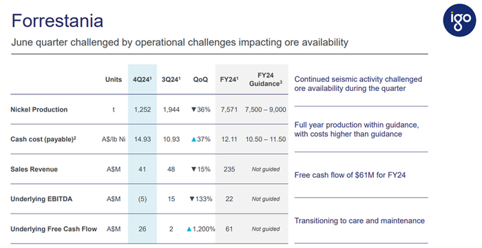 IGO 2024Q2财报电话会纪要:Greenbushes恢复满产,Q2锂精矿销量环比大增190%