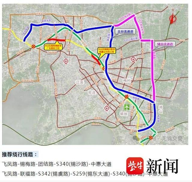 本次施工将对交通出行产生较大影响,尤其是对货运、物流驾驶人,请提前关注施工情况,做好绕行准备。绕行方案包括:远端高速绕行方面,南京、上海来往车辆建议通过沪宁高速或苏锡常南部通道绕行;过境车辆绕行方面,推荐绕行线路包括:飞凤路-锡梅路-团结路-S340(锡沙路)-中惠大道、飞凤路-联福路-S342(锡虞路)-S259(锡东大道)-S340(锡沙路)-中惠大道;S342绕行方面,3、过境车辆绕行路径