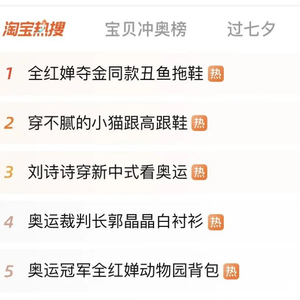 7月31日,全红婵和搭档陈芋汐为中国队夺得了跳水女子双人10米台金牌,赛后,全红婵脚上那双“丑鱼拖鞋”火了。检索发现,“全红婵同款拖鞋”在淘宝热搜的热度近700万,相关商品近200件,一周内相关话题热度上升113%。有网友笑称:“全红婵把广式松弛感带进奥运会。”“啥也别说了,上链接吧。”