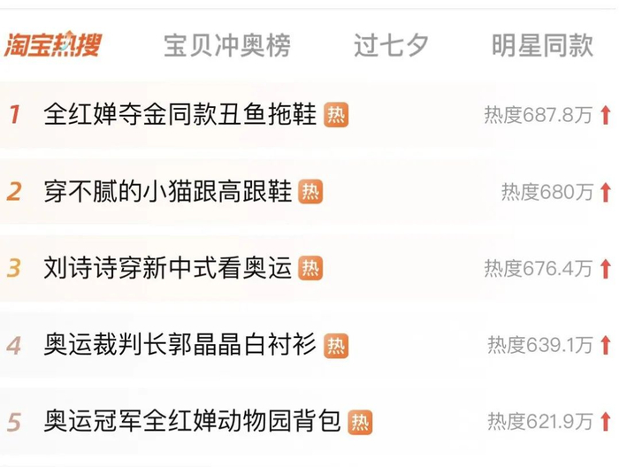 巴黎奥运会赛事正酣,中国奥运健儿闪耀赛场的同时,众多“奥运同款”也跟着火了起来。奥运冠军黄雨婷的同款发夹、全红婵的拖鞋……相关商品的搜索量和销量一路走高。