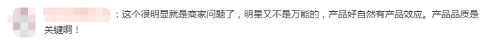 有网友认为,花300万元请明星直播带货只卖了20多万元,算是企业投资失败。还有人表示,明星不是万能的,产品品质才是关键。你怎么看?