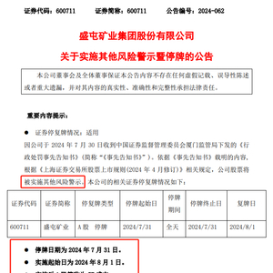 盛屯矿业7月31日停牌,8月1日复牌并将简称由盛屯矿业更改为“ST 盛屯”。