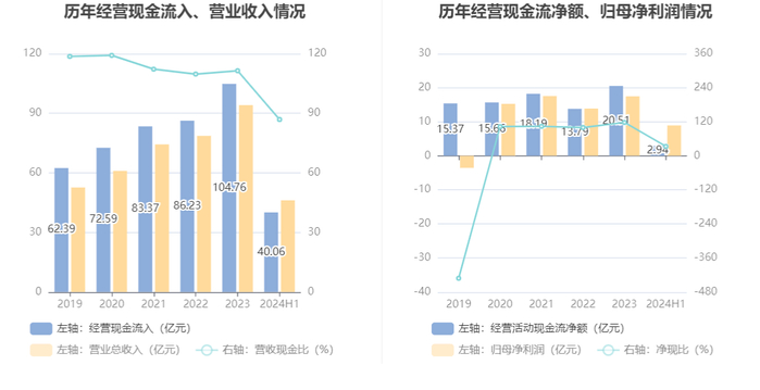 2024年上半年,公司营业收入现金比为86.83%,净现比为33.04%。