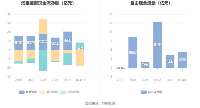 2024年上半年,公司经营活动现金流净额为2.94亿元,同比下降71.69%;筹资活动现金流净额-17.58亿元,同比减少14.18亿元;投资活动现金流净额5.38亿元,上年同期为-14.84亿元。