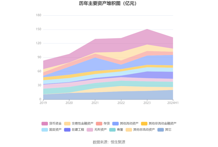资产重大变化方面,截至2024年上半年末,公司交易性金融资产较上年末减少51.15%,占公司总资产比重下降4.05个百分点;货币资金较上年末减少27.89%,占公司总资产比重下降3.99个百分点;其他流动资产较上年末增加12.14%,占公司总资产比重上升3.58个百分点;在建工程较上年末增加5.00%,占公司总资产比重上升1.81个百分点。