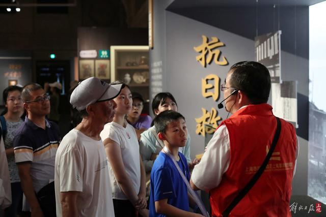 姜士根一家打算看博物馆逛南京路,上了地铁才发现上海的博物馆周一常态闭馆,正在犹豫时,他看到上海发布推送,行程里的上历博竟然开馆,他带着儿子和来上海游玩的亲戚认认真真地跟着志愿者听“光荣之城——上海市革命场馆联盟红色文物史料展”的讲解。