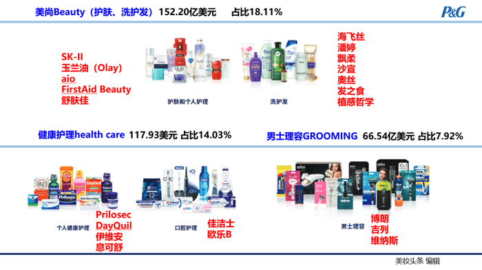 美尚(皮肤和个人护理、秀发护理),是宝洁第三大业务板块。