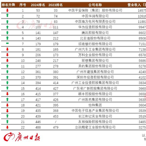 总部位于广州的上榜企业,在能源、汽车制造和基础设施投资建设等领域表现突出,中国南方电网以1188.1亿美元的营业收入,位列第78位;广汽集团以713.8亿美元的营业收入,位列第181位;广州市建筑集团以424亿美元的营业收入,位列第361位;广州工业投资控股集团以383.4亿美元的营业收入,位列第394位;广东省广新控股集团以366亿美元的营业收入,位列第414位;广州医药集团有限公司以363亿美元的营业收入,位列417位。