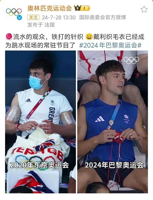 就连国际奥委会也忍不住发文调侃:“流水的观众,铁打的针织。戴利织毛衣已经成为跳水现场的常驻节目了。”