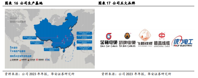 公司生产基地布局广泛,为线缆领先企业。公司专注和深耕线缆行业 70 余年,通过不断的兼并整合,以长沙、衡阳、武汉、成都、南昌五大线缆生产基地为核心并不断向周边拓展,目前已拥有湖南“金杯”、湖北 “飞鹤”、四川“塔牌”、江西“赣昌”四大区域影响力大、底蕴深厚、经销渠道成熟的线缆品牌,现已成为全国线缆行业优势企业、中西南部地区线缆领先企业。