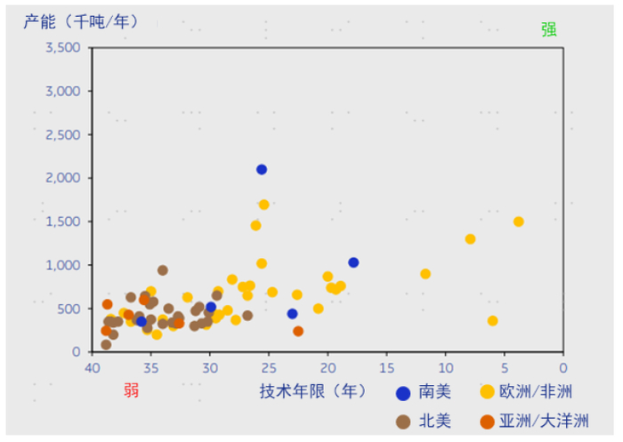 图表:全球商品针叶浆生产线技术年限偏高