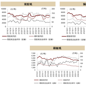浆纸系层面,我们预计:①文化纸:仍然是大宗纸确定性最高品种,需求韧性强、供给端相对宽松、龙头呵护市场心态明确,在3Q库存成本向上背景下,文化纸吨利润可能略收窄。②白卡纸:供应压力明显、需求更受限于社零消费,3Q吨价格及盈利可能继续底部震荡,4Q旺季有望迎来温和反弹。③特种纸:类似文化纸,3Q24库存成本走高、需求不足以支撑大幅提价,浆纸剪刀差盈利收窄,3Q24吨利润环比走弱。废纸系层面,即箱板瓦楞纸:当前为包装纸传统旺季,但价格反馈需求整体偏弱,供给端来自中小厂的产能增多,我们判断短期价格提涨动能弱,行业深陷盈亏平衡超过2年,我们建议重点关注负债和现金流风险。