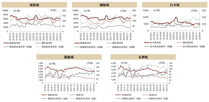 图表:各类纸种均价及库存