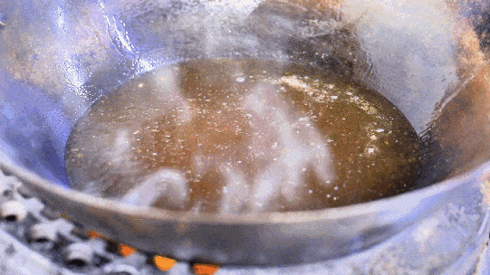 2.炸至表面金黄且酥脆时捞出沥油。如果需要更加酥脆的口感可以进行复炸:将油温升至七八成热(约210℃-230℃),再次将五花肉放入油中炸几秒钟后迅速捞出。