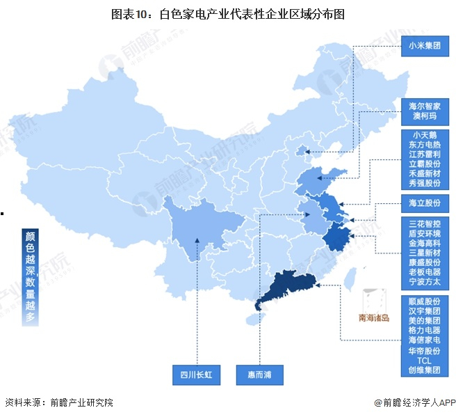 从代表性企业分布情况来看,美的集团、格力电器、海信家电、TCL、创维集团等白色家电行业领先企业均位于广东,广东省白色家电行业发展在全国处于优势地位。三花智控、盾安环境、老板电器、宁波方太等企业均位于浙江省,具有较强的产业链协作能力。小天鹅、东方电器、江苏雷利等企业均位于江苏省,同样具备一定的产业链协同发展优势。