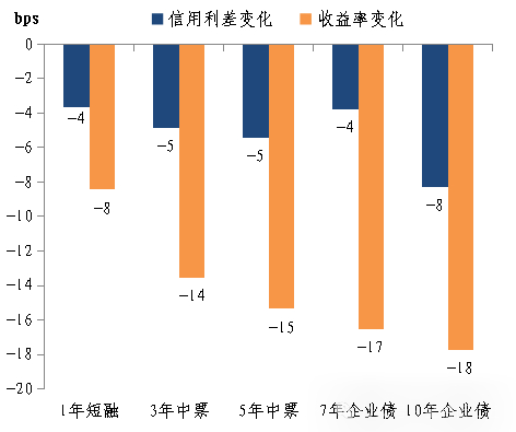 图6:7月相对6月末AAA级信用利差和收益率变化