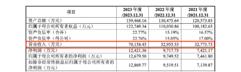 2021年至2023年,国科天成分别实现营业收入3.28亿元、5.30亿元和7.02亿元,归母净利润分别为0.75亿元、0.97亿元和1.27亿元。这表明公司在过去三年里实现了稳定的收入和利润增长。