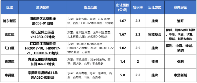虹口江湾地块共有4名竞买人报名,分别是保利发展、中海、绿城、象屿,而浦东北蔡地块由浦开托底,青浦重固地块和奉贤新城地块被保利发展和奉贤新城公司托底。