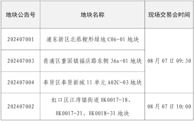 8月6日上午,上海土地市场公布四批次土拍出让活动时间表。