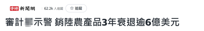 台当局审计部门指出,2023年台农产品前10大出口国家或地区中,8个国家或地区出口值均较2022年衰退。这代表开拓其他海外市场,无法弥补大陆对台农产品实施进口禁令后减少的外销缺口。