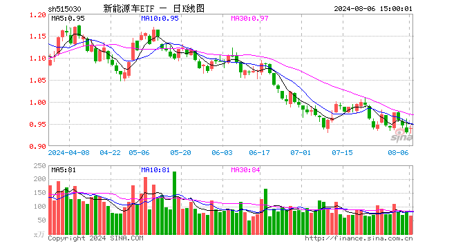 规模方面,截止8月5日,新能源车ETF(515030)最新份额为50.00亿份,最新规模为46.47亿元。回顾2023年12月29日,新能源车ETF(515030)份额为70.28亿份,规模为83.79亿元。即该基金今年以来份额减少28.85%,规模减少44.54%。