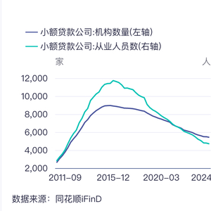小额贷款公司机构数量及从业人员数变化 (同花顺 iFind制图)