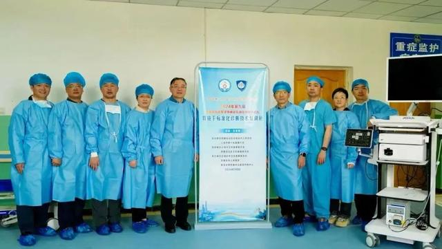 复旦大学附属中山医院内镜中心主任周平红(左五)参加2024年第九届西藏自治区医学珠峰主论坛消化内镜分论坛,手把手进行临床操作后,与医务人员合影。
