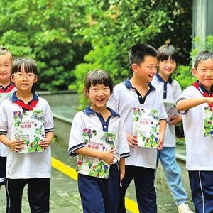 领到新书,步行在花园般的校园里,孩子们的脸上洋溢着快乐的笑容。 记者 陆宇其摄