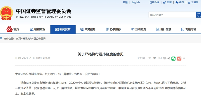 将进一步严格强制退市标准