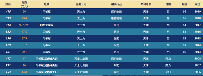 天士力快速发展,闫希军家族资产水涨船高,曾十度登上新财富500创富榜。
