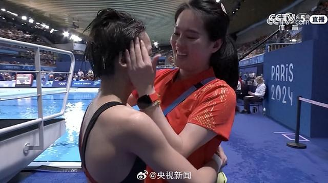 全红婵夺冠 赛后她抱着教练陈若琳哭了