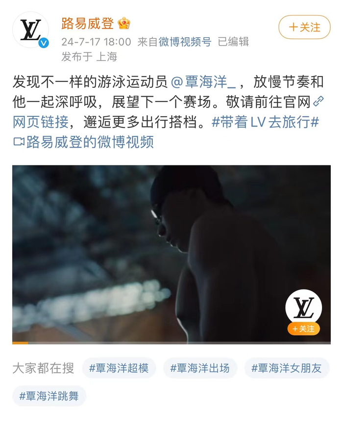 在8月4日晚男子4×100米混合泳接力决赛,徐嘉余、覃海洋、孙佳俊、潘展乐强势逆转夺冠,打破了美国队在此项目上长达40年的垄断。其中,老将徐嘉余赛前已成为运动休闲品牌Arena的品牌代言人,1999年出生的覃海洋则手握LV、伊利、太平洋保险、超能、农夫山泉、安踏等品牌合作。