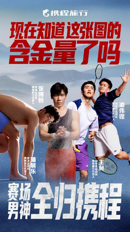 此外,梁伟铿搭档王昶首次参加奥运会,就一路杀进男双决赛并拿到了银牌的成绩。值得注意的是,今年7月初,携程旅行宣布的三组代言人中就有“梁王”组合。除这一组合外,还有中国游泳运动员潘展乐以及体操运动员张博恒。有意思的是,这四位运动员均是“00后”:张博恒和梁伟铿出生于2000年,王昶出生于2001年,最小的潘展乐出生于2004年,四人组合成为携程旗下金牌男团成员。