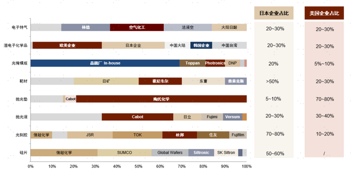 前道材料:硅片、靶材、掩模板等领域日本企业占比较高