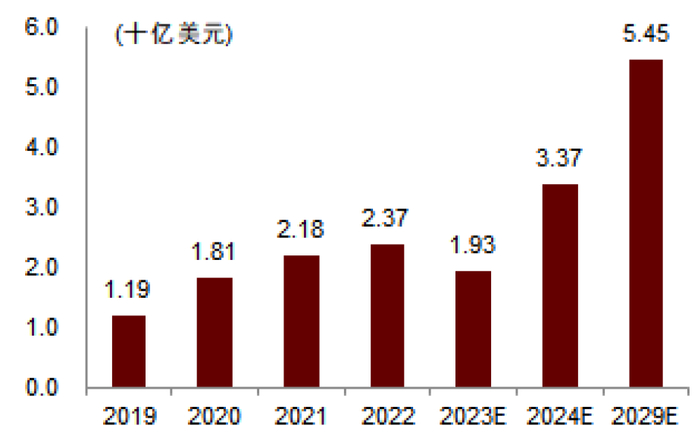 图表12:2019-2029全球半导体前驱体市场规模