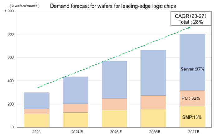图表5:先进逻辑芯片对硅片的需求