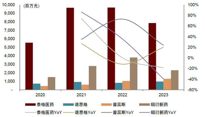 注:2020年医药收入出现小幅下滑主要受到疫情影响