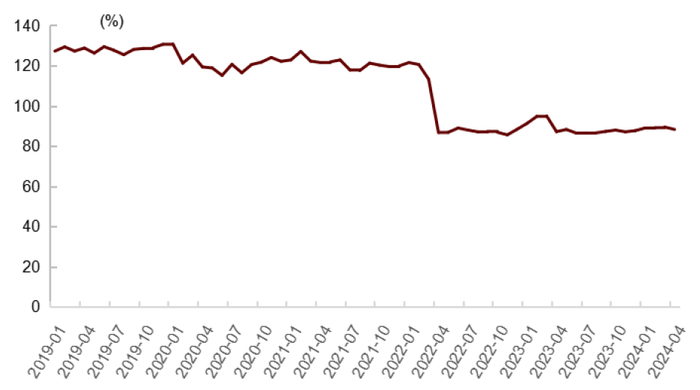 图表:全国消费者信心指数月度变化(2019.1-2024.4)
